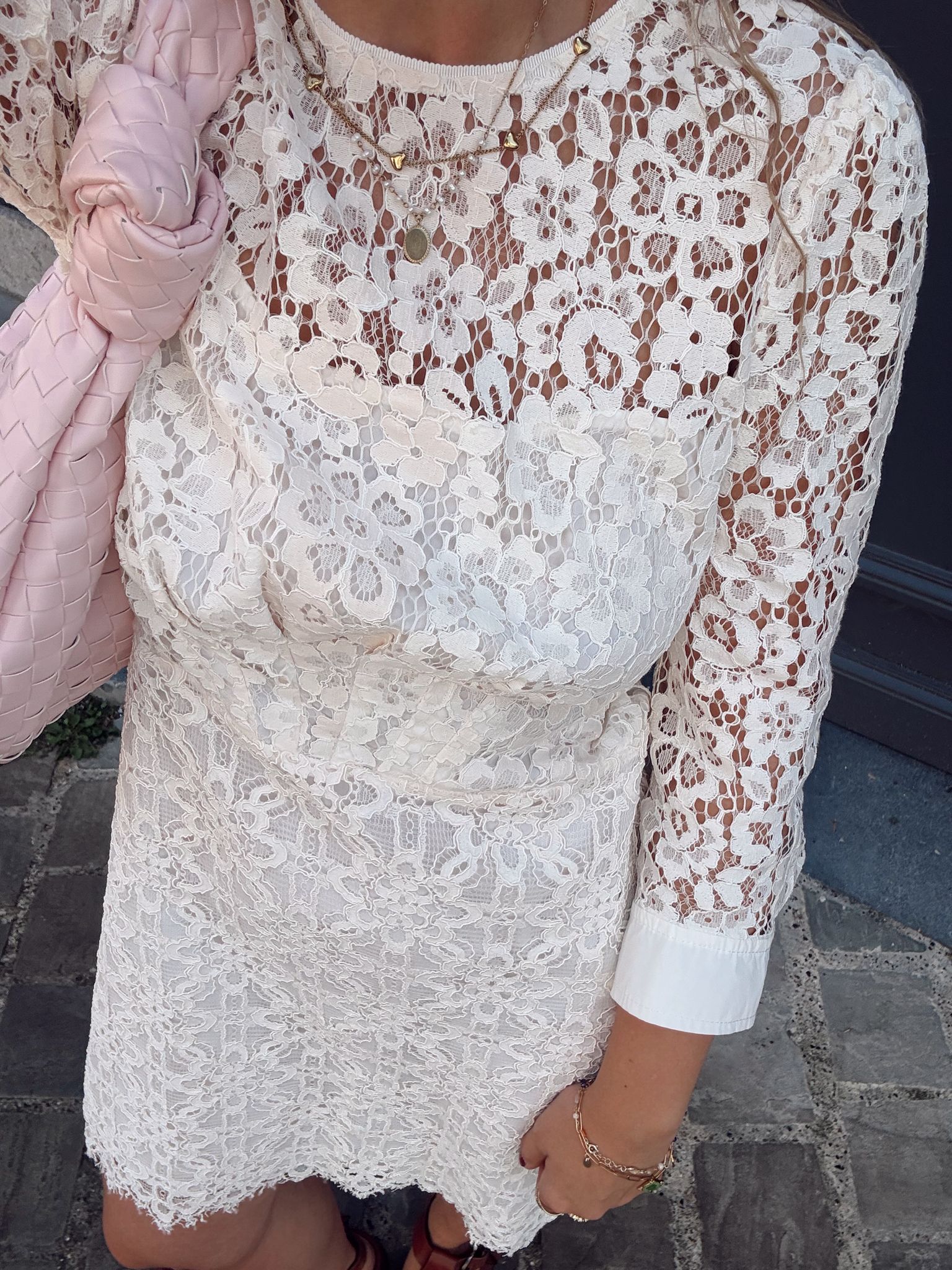 Élégante et intemporelle, cette robe courte en dentelle signée Sandro sublime la silhouette avec sa coupe ajustée et sa ceinture intégrée. Son raffinement en fait une pièce idéale pour vos occasions spéciales.